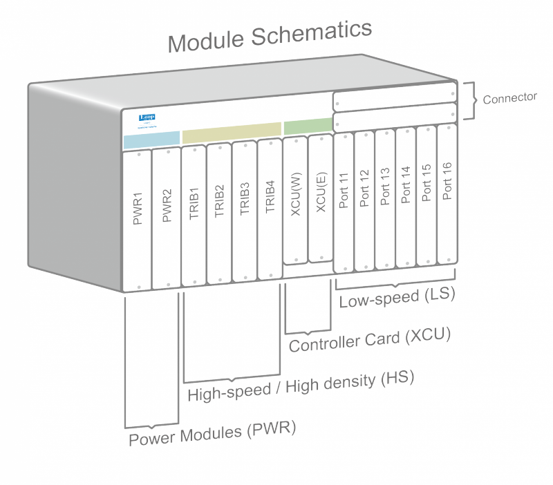 - Hot-swappable cross-connect modules, tributary modules and power modules.