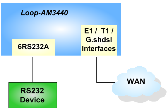 The 6RS232A card for Loop-AM3440 series has 6 interface ports. For the RJ version, 6 RJ48 connectors are available in Asynchronous mode. For the DB version, 2 DB44 connectors are available in Asynchronous and Synchronous modes, and provide 3 ports each. Two cables are included. Each cable converts from DB44 connector to two DB25 and one DB9 connectors.