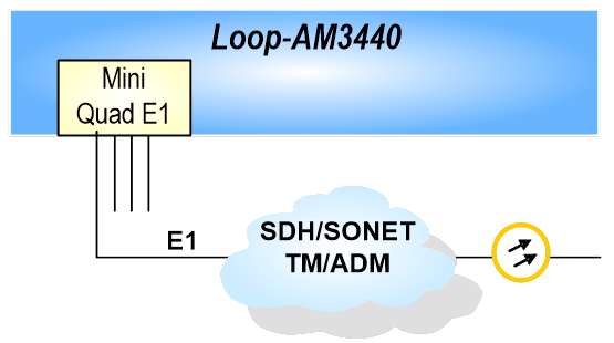 The Mini Quad E1 plug-in card is designed for the mini-slot of the Loop-AM3440 series. It allows each DS0 time slot in the T1 or E1 interfaces to be interchanged and multiplexed onto a digital network.