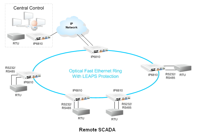 The IP6810 facilitates automation systems, SCADA systems, surveillance systems, traffic control systems, transportation systems and IP networking with robust protection in ring, point-to-point, or omnibus-like topology. Easy installation and configuration make maintenance and further expansion more efficient and cost-effective.