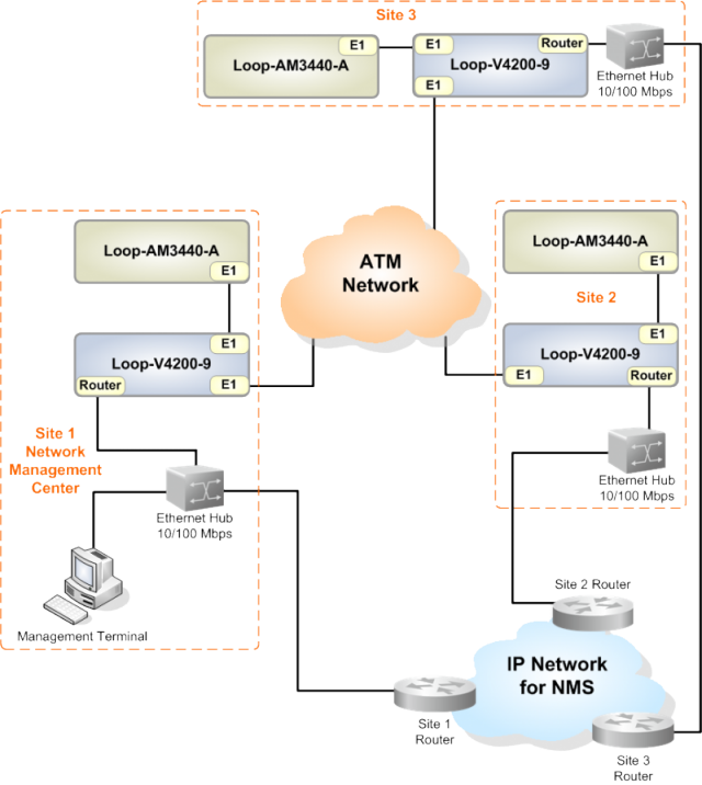 By using affordable Loop-V4200-9 and Loop-AM3440 units the client was able to integrate inband management into the existing IP network.