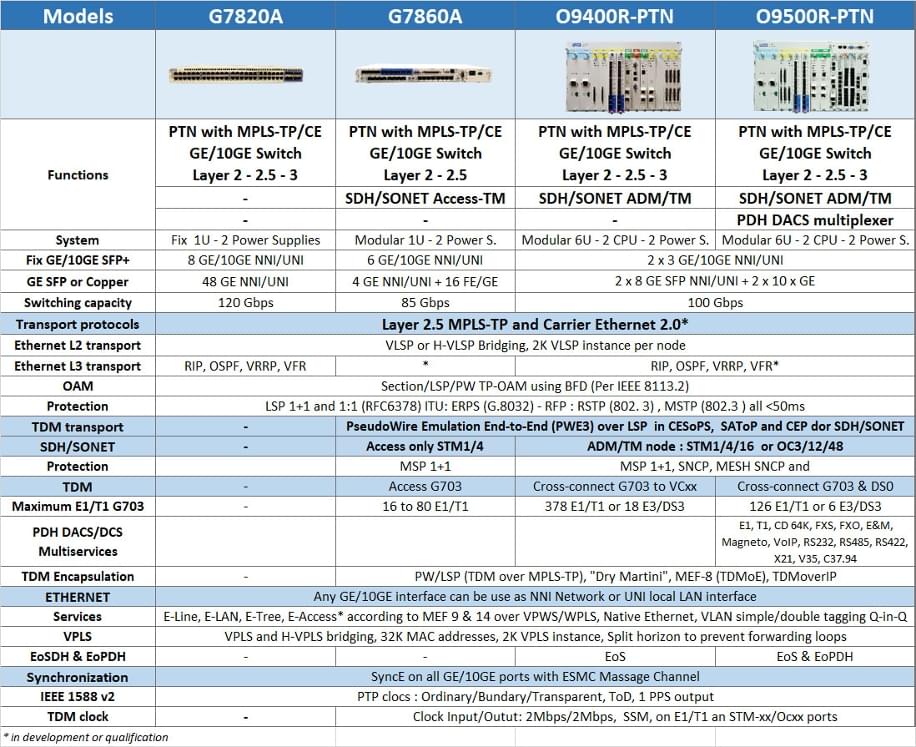 their access tributaries interfaces make the interest for the different end-user application, but all devices are using the same evolutive Loop-OS with Layer 2, 2.5, 3 and some IP/MPLS feature in development.